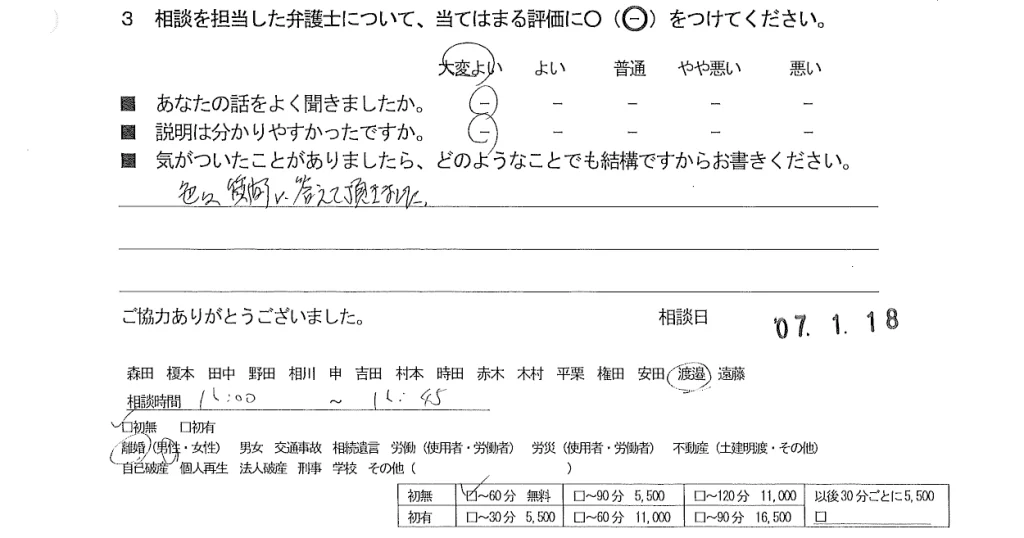 ■年代 ■担当弁護士 ■あなたの話をよく聞きましたか ■説明はわかりやすかったですか